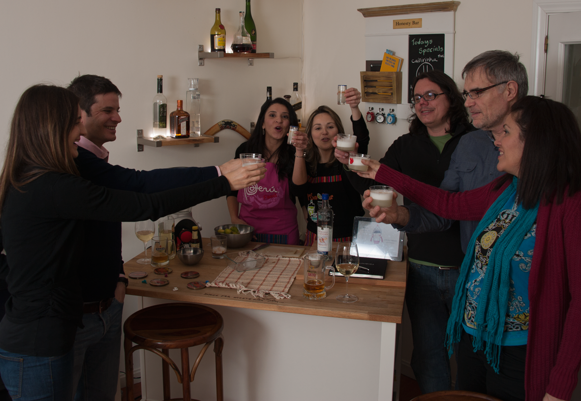 A las nueve y media llegaron nuestros invitados, quienes siguieron al pie de la letra la ‘etiqueta clandestina’ con una puntualidad exquisita. Estaban tan o más entusiasmados que nosotras con nuestro pequeño proyecto, y en pocos minutos ya conseguimos un ambiente muy distendido, a pesar de que no todos se conocían. Bueno, parte del crédito se lo podemos dar al Pisco Sour que servimos para brindar.